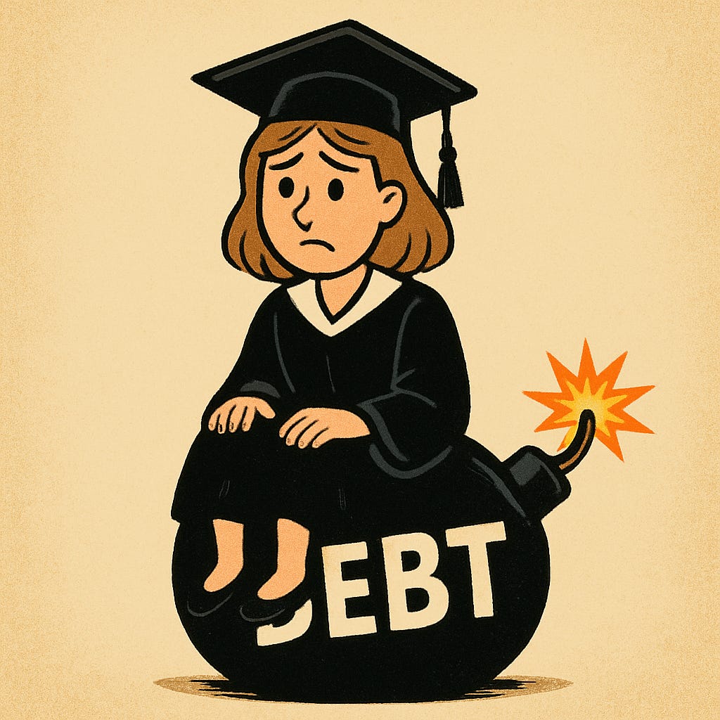 American higher education has become the policy equivalent of a well-meaning uncle who keeps giving you “investment advice” that leaves you owing him money. What began as a noble idea, let every kid chase the American Dream with federally backed student loans, has quietly turned into a $1.8 trillion debt bomb sitting at the base of the country’s social mobility ladder.
